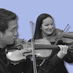 Violinists Christopher Otto and Austin Wulliman, along with New York City trailblazers, perform amid Romanesque architecture.