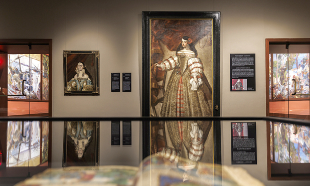 Set in an ornate Renaissance courtyard, the exhibition tells the story of a remarkable era of fashion history through the museum’s rich collections, including royal portraits, sumptuous textiles and jewelry, life-size sculptures, and vibrantly illuminated manuscripts.